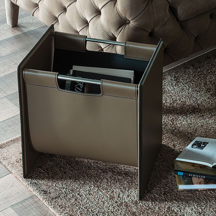 Газетница с хромированным профилем (08), обитая мягкой кожей цвета согласно образцам.