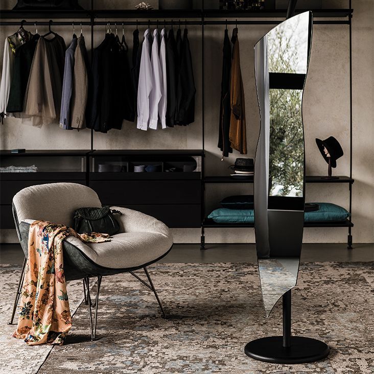 Зеркало-вешалка из зеркального стекла или дымчатого зеркального стекла со структурой из ясеня, окрашенного под орех Canaletto (frNC) или обоженный дуб (frRB).