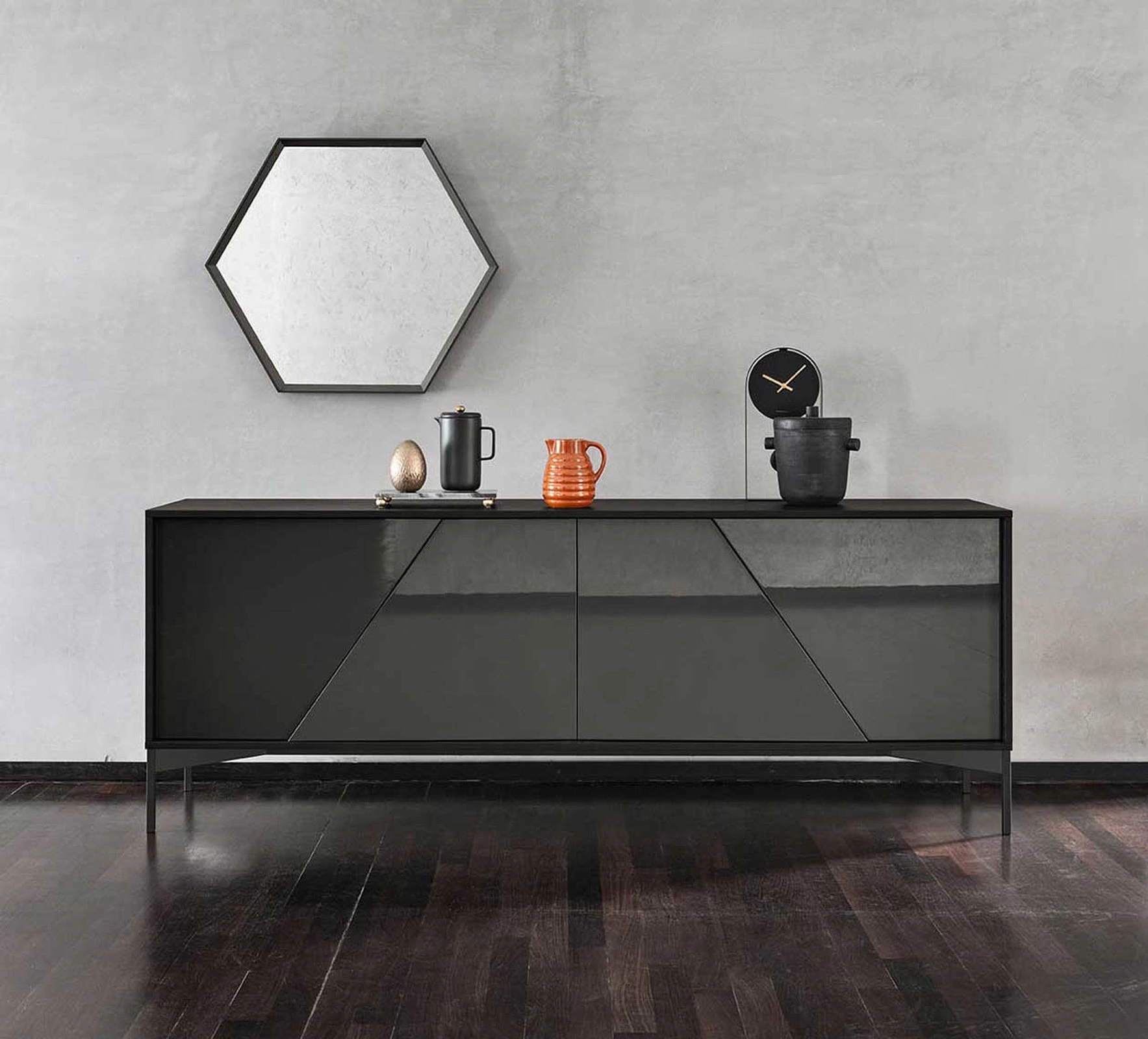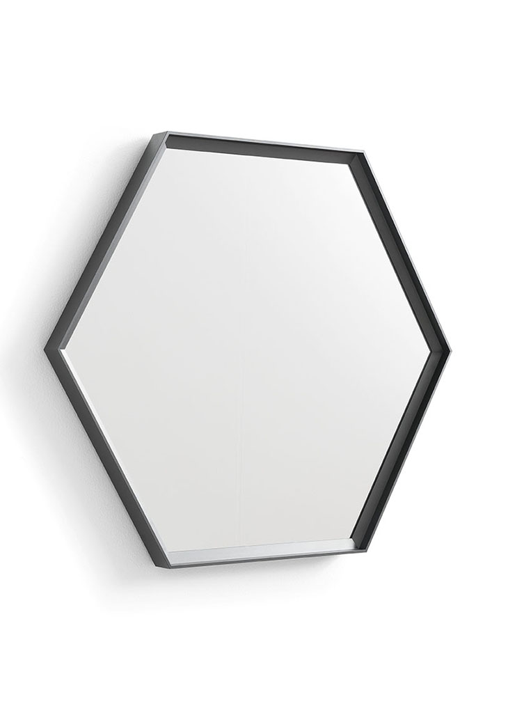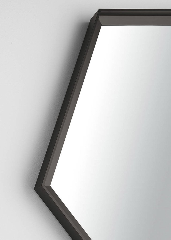 ESAGONA - это настенное зеркало в современном стиле, характеризующееся строгими формами: открытая ломанная линия создает обрамляющий зеркало металлический шестиугольник.