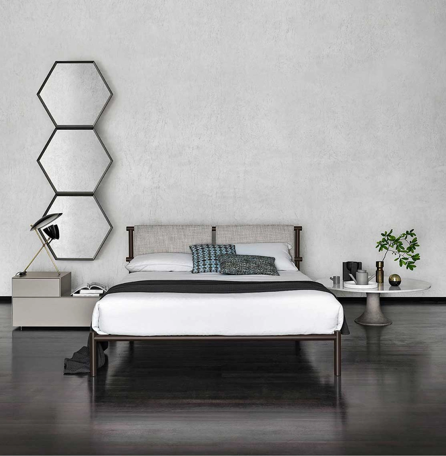 Зеркало ESAGONA, подходящее для любой обстановки, имеет металлическую раму с отделкой Moka