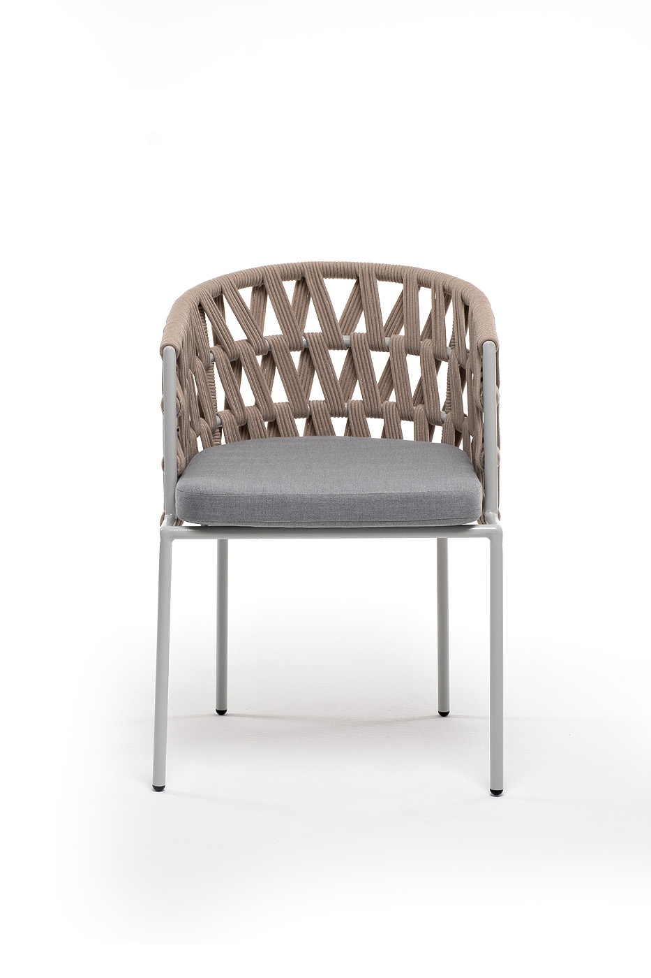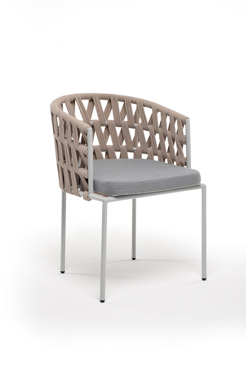"Диего" стул плетеный из роупа, каркас из стали светло-серый (RAL7035) муар, роуп бежевый круглый, ткань светло-серая